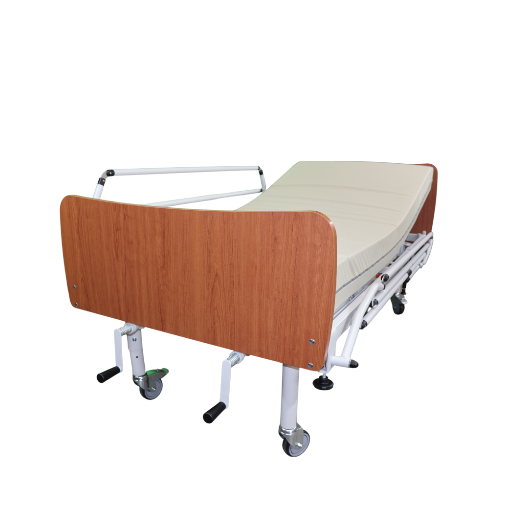 - Composto por estrado tripartido manual de elevação por manivela e tacos reguláveis em altura;