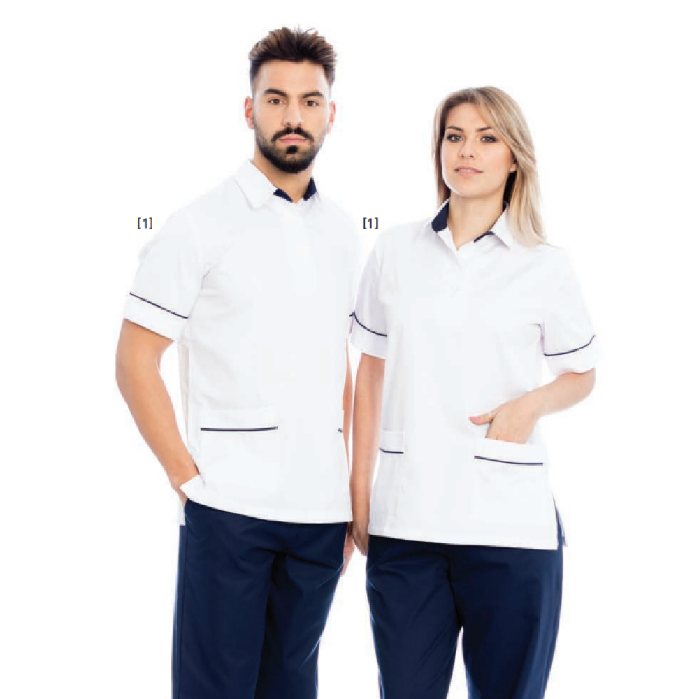 Túnica unisexo composta por sarja, 65% poliester 35% e algodão.
