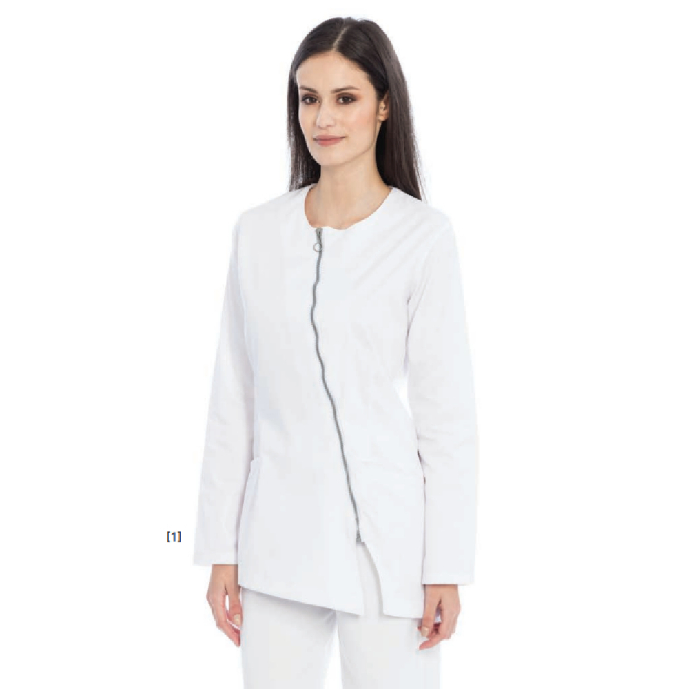 Túnica manga comprida com fecho composta por sarja, 65% poliester e 35% algodão.
