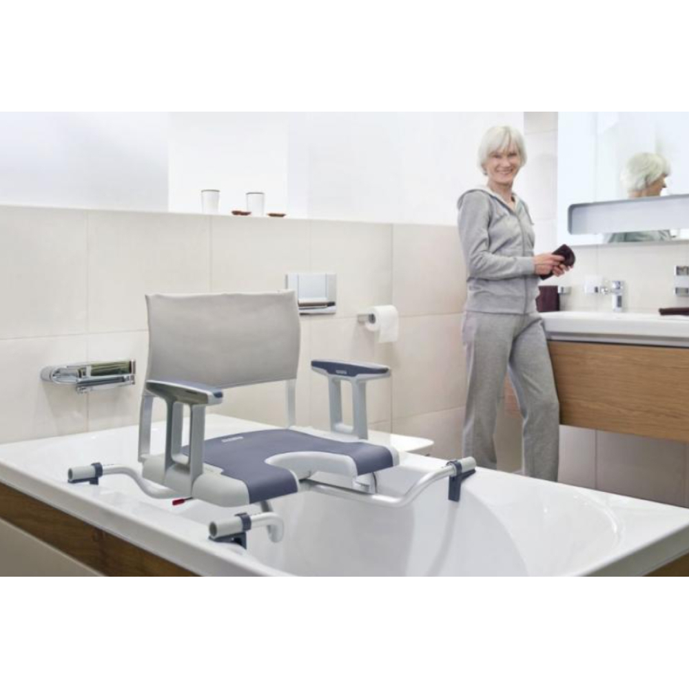 - Indicada para utilizadores com desequilíbrio em pé, pouco tónus no tronco ou que necessitam de maior apoio durante o banho.