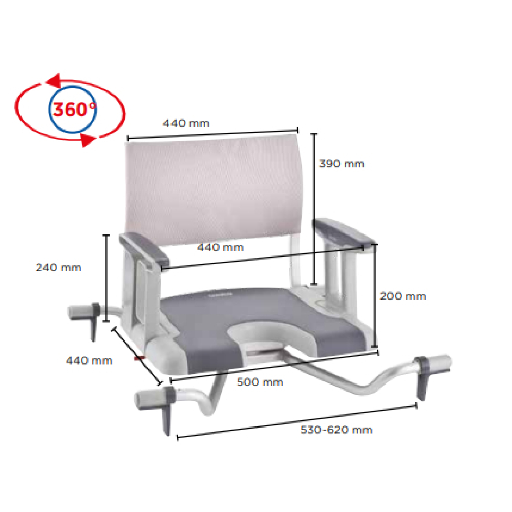 » Assento giratório 360º com manípulo acessível dos dois lados