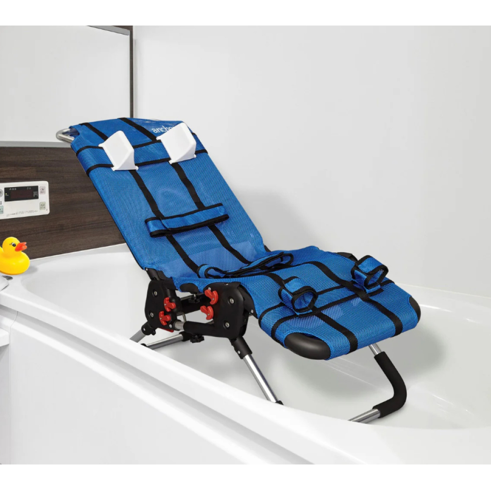 - A maca está equipada com pés largos, arredondados e antiderrapantes para um banho seguro na banheira;