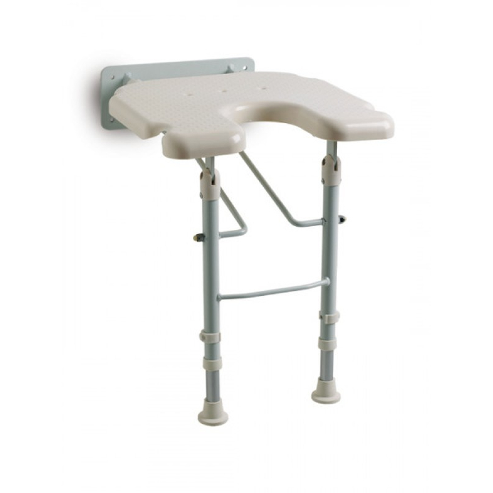 O assento em forma de U facilita a higiene íntima. Este assento de duche de parede com pernas é a alternativa adequada quando pretende ter um assento sempre disponível, mas que possa ser facilmente rebatido, deixando o duche livre. Estrutura em alumínio inoxidável com assento em plástico.