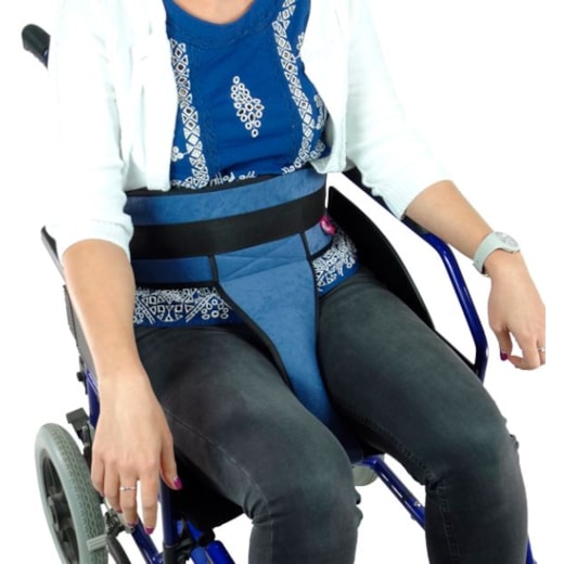 - O cinto pélvico para cadeira é projetado para oferecer estabilidade a pacientes com dificuldades físicas ou psicológicas que podem resultar em instabilidade postural;