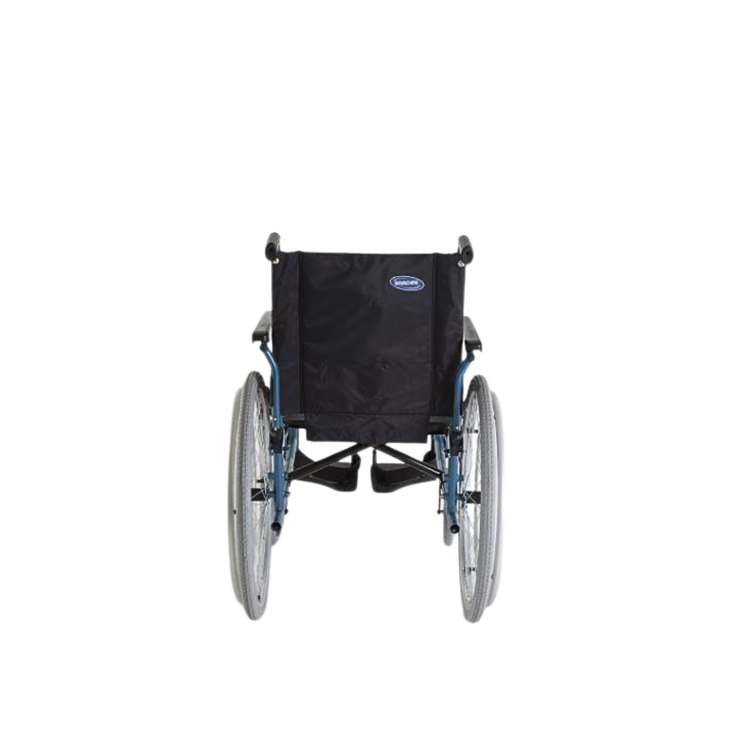 - É a cadeira de entrada da gama das cadeiras de rodas manuais e é líder de mercado por ser uma cadeira de rodas manual robusta e resistente, com encosto fixo e soldado para maior segurança e estabilidade;