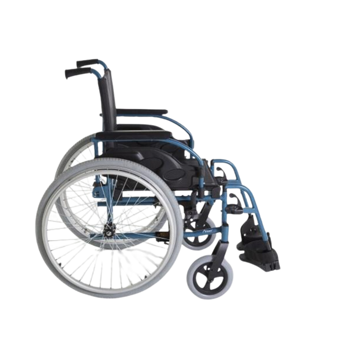 - Apoios de braços rebatíveis e removíveis para facilitar transferências