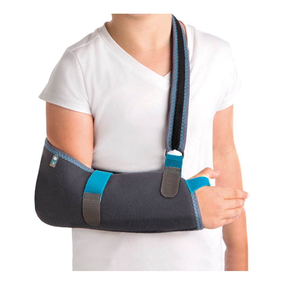 - Possui faixa de ajuste na cintura que, uma vez fechada, imobiliza a articulação do ombro.