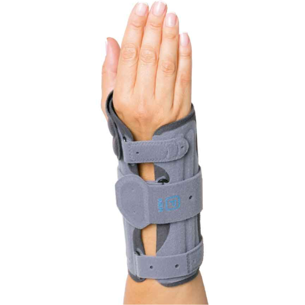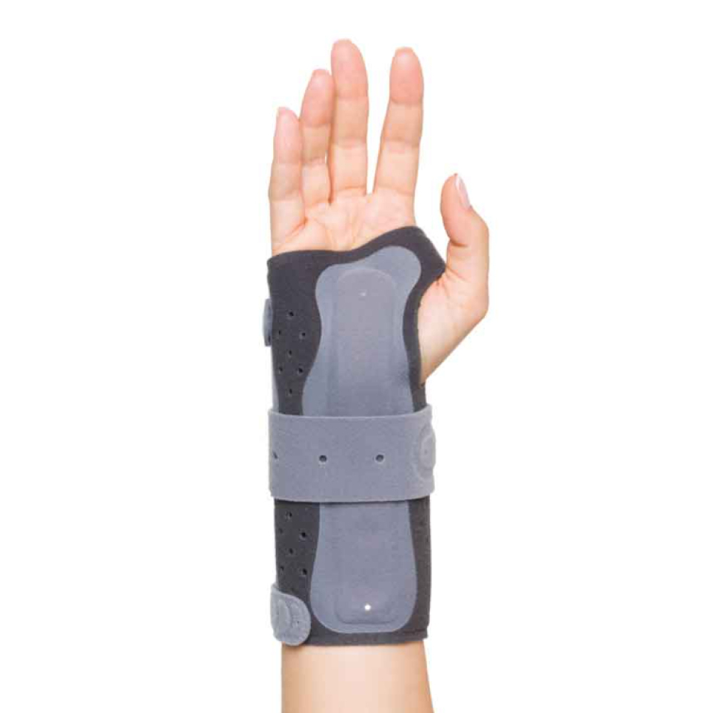 - Limita a flexão dorso-palmar, ajudando a reduzir a inflamação do nervo mediano, graças à sua tala palmar de alumínio maleável;